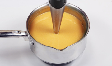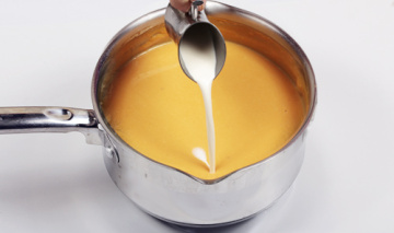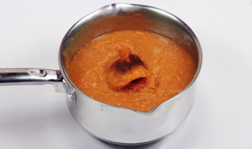 Enfin, ajouter la crème et le jus d'orange et, si nécessaire, diluer avec un peu d'eau et laisser mijoter pendant quelques minutes, mais ne pas porter à ébullition!